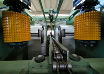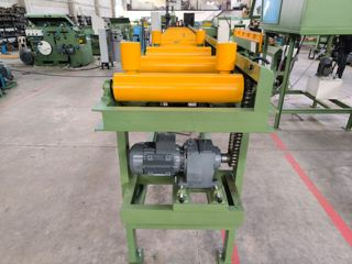 13' 4 strand log deck with 4 strand shark fin loading ramp to endwise 20' infeed conveyor with turner. 350 side chipping module with outfeed conveyor. Positioning conveyor to chipping module #2 to chip other two sides of the cant. 4 x 4, 6 x 4, 4 x 6 or whatever you want to make with this size log. 6" to 11"